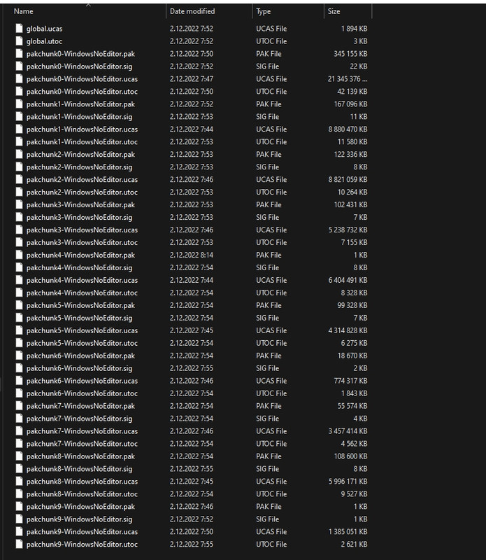 this is i already know from beginning, but that is not we need... I knew there will be a problem with utoc/ucas files.... sig file is signing only headers in pak file it seems...